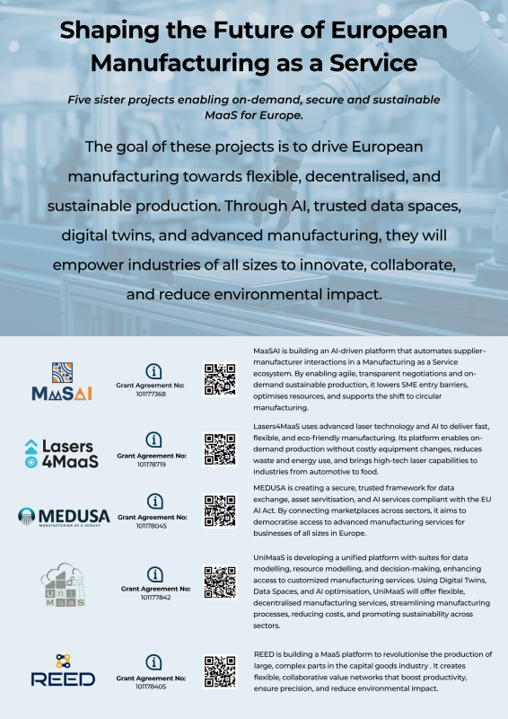 The main objective of REED project will be the development of a Manufacturing as a Service (MaaS) platform that will provide the enabling technologies, equipment and services for the manufacturing of bulky parts of the capital goods sector, assuring the quality of the produced components while maximising productivity and minimising environmental impact. The REED platform will redefine the B2B relationships through a networked digital productive model.
